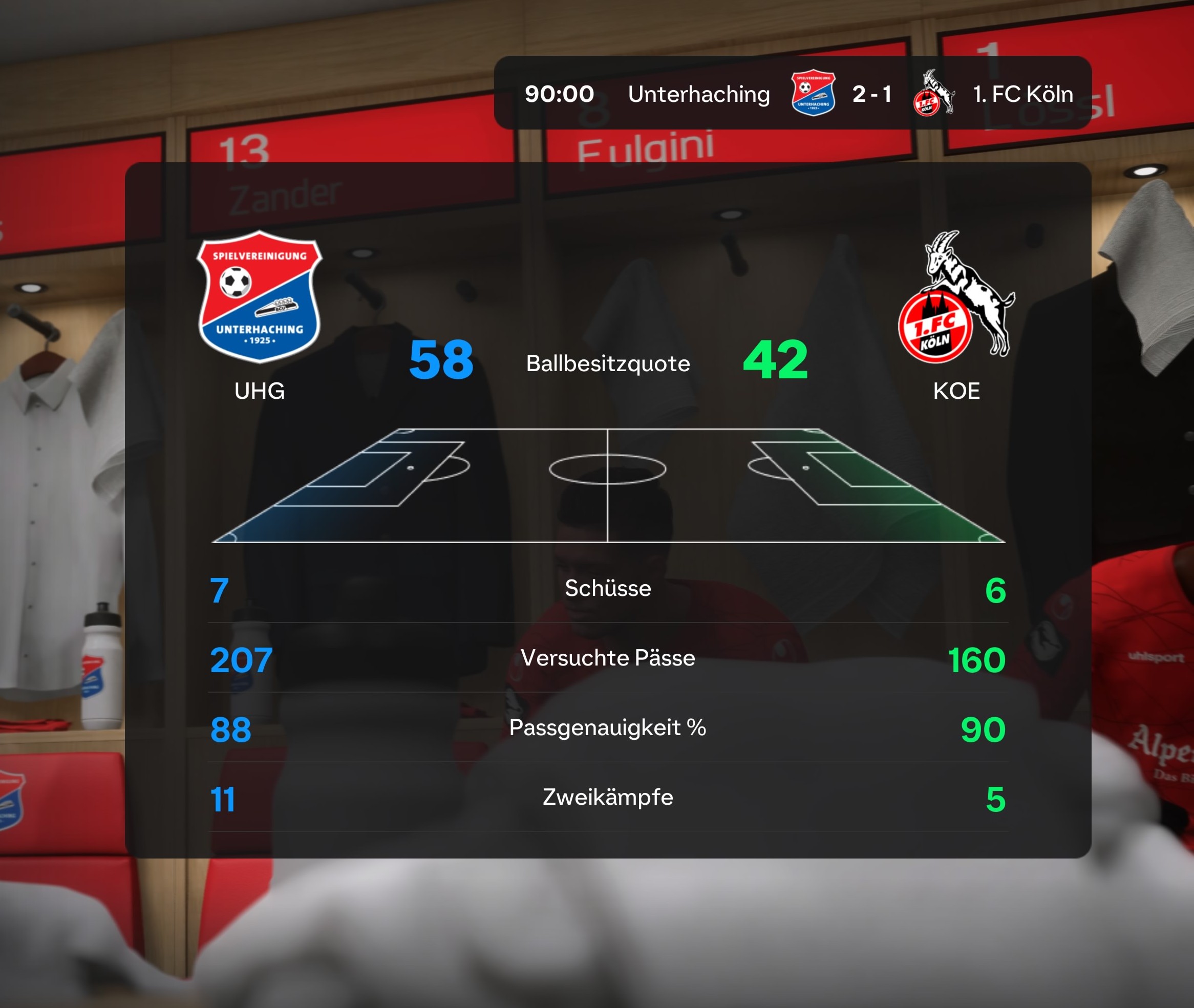 Am frühen Abend empfing die SpVgg den 1.FC Köln. Die kölner zeigen eine überragende Leistung in der bisherigen Saison, für die Hachinger gilt das bisher nicht. Anpfiff!!! Es zeigt sich früh das beide Mannschaften sich einiges vorgenommen haben. Köln immer wieder mit viel Tempo und Unterhaching versucht das Spiel zu kontrollieren. Eine unfassbar spannende Partie die hier abgeliefert wird! 38' doch Friedel liefert hier einen Phantom zweikampf und dreht sich in die falsche Richtung! Das spielen die kölner intelligente aus und auch der Reinrutschende Tisserand kann den satten Schuss von Remberg nicht mehr weg lenken! 0-1! Bis hier her auch ein verdienter Spielstand. Aber das Tor hat etwas bewirkt, den Unterhaching dreht noch immer mehr auf und lässt den Mittelfeld Motor warmlaufen! Die erste hälfte passiert soweit nichts mehr, außer eine unfassbar Tolle Partie! 2. Halbzeit: Fulgini und Handle kommen für Wanitzek und Lemmer. Die Partie läuft genauso Spannend weiter wie zuvor! Unterhaching mit viel Ballbesitz und vielen pässen, Köln immer wieder mit schnellen pässen und laufwegen. 63' eine Kölner Ecke wird zum Verhängnis! Opoku kann auf der linken Seite fast vom eigenen Strafraum bis zum Tor laufen und schließt ins Kurze Eck ab! 1-1 72' jetzt läuft die Partie genau nach Hachinger Art, viel Platz für schnelle Pässe im Mittelfeld, das zeigt sich in der Kombination zwischen Fulgini, Gomez und Jovic. Der Serbe bekommt einen sauberen Pass in den Strafraum und verwandelt ihn per Schlenzer ins lange Eck! Spiel gedreht 2-1! Nun Unterhaching total am drücker, der Spiel Spaß ist sichtbar und jede Aktion sieht kontrolliert aus. Hi ten brennt nichts mehr an trotz dem unfassbar hohem Tempo der Kölner. Abpfiff! Fazit zum Spiel: Unterhaching sehr konzentriert. Hinten kaum etwas anbrennen lassen und vorne einigermaßen effizient. Köln mit starkem Tempo Spiel und Dribblings. Defensiv auch stark aber gegen das Hachinger Passpiel oft machtlos. EINE PARTIE AUF AUGENHÖHE! Ich wünsche köln noch eine erfolgreiche Saison! |