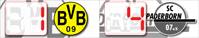 | Heute ging die Reise für Paderborn ins schöne Dortmund. Es ging für beide Teams um wichtige Punkte für den 3. Tabellenplatz. Paderborn, obwohl der BVB mit der Südtribüne im Rücken, leichter Favorit. Das Spiel war offen, es gab kein großes Mittelfeldgeplänkel, ein wahres Hin und Her. Riesenchancen gab es aber nicht viele, da der letzte Pass oft nicht ankam. Anders in der 30. Minute, als Paderborn mit direktem schnellem Kombinationsspiel die Dortmunder Innenverteidigung aushebeln konnte und Krause frei vor Lehmann zur Führung einschieben konnte. Mit einem 1-0 für die Gäste ging es auch in die Kabinen.. In der 2. Halbzeit war die Partie schnell entschieden. Thurk konnte in der 52. Minute nach einer Ecke zum 2-0 einköpfen. Kurz darauf konnte Huggel in der 57. Minute das vorentscheidende 3-0 erzielen. Man sah die Motivationsabnahme seitens der Borussen, besonders nach dem 4-0 durch Krause in der 69. Minute. Frust machte sich unter den Dortmundern breit, denn die Beine der Paderborner Spieler wurden als Ziel anvisiert. Paderborn wollte dies ausnutzen und noch ein Tor nachlegen. Dies sollte aber nicht gelingen, es kam sogar anders. Einen Konter konnte Amoroso in der 76. Minute zum 1-4 Endstand einnetzen. Nennenswert waren in der Schlussphase nur noch zwei rote Karten für Dortmund, jeweils per Notbremse in der 90. Minute. Am Ende ein verdienter Sieg für die Gäste. | ||||