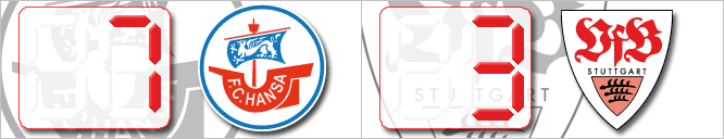 Auch heute ging Hansa als leichter favorit ins spiel und startete gleich durch, anstoss langer ball kein abseits und tor 1:0 nach 70 sekunden. Der vfb kam aber schnell zurück und glich per erster chance aus. Nun entwickelte sich doch ein offener schlagabtausch in dem hansa vor der pause eiskalt alles ausnutze was vors tor kam 4:1 die führung, ganea mit dem pausenpfiff zum 2:4 anschlußtor. | ||||