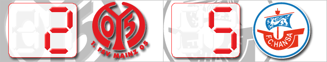 Ganz bitteres spiel für mainz 05 , man rannte 90min an und hatte genug chancen doch was nützt es wenn der eigene schlussmann einen schwarzen tag erwischt. Erst unlief er zwei freistösse die zu tore führten , dann rasselte er mit einem abwehrmannzusammen und beim entscheidenen 5:2 konnte er den ball auch nicht festhalten. So siegte rostock zwar deutlich aber mit sehr sehr viel glück! | ||||