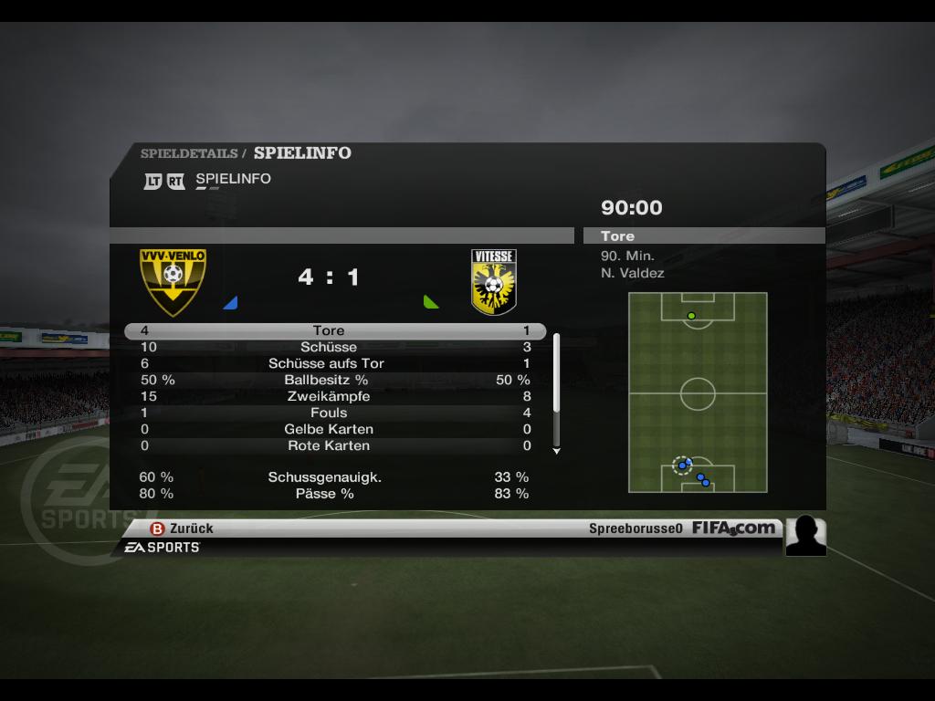 | Spielbericht: Der momentan 4.Platzierte zu Gast in Wuppertal...Die Fans sind heiß auf den zweiten Saisonsieg! Wuppertal, wieder mit der bewerten 5-3-2 Auftellung, mach gleich am Anfang Druck.Die Belohnung dafür ist das 1:0 durch Müller in der 25. Minute nach schönem Pass von der Strafraumgrenze von Valdez. Mann sieht Wuppertal will den Sieg haben und die Fans feuern sie euphorisch an, ein Hexenkessel.Uerdingen kommt immer wieder gut bis zum 16´er vor, aber da ist dann auch Schluss.Die Abwehr steht. 2.HZ: Uerdingen wechselt Baya für Schnier ein.Doch das bringt erst mal nichts.Valdez macht 10 min nach Wiederanpfiff das 2:0.Verdient, meine ich.Auch in HZ 2 das selbe Bild bis zum Starfraum sieht das ganz gut aus was Uerdingen spielt.Aber die Wuppi Abwehr steht wie ein Fels in der Brandung.Der Lohn in der 69. Minute.Varela ist durch und macht im Nachschuss das 3:0...Das Stadion scheint gleich zu explodieren.Da geht der Anschlusstreffer durch Le Tallec in der 74. Minute unter...Aber das ist der Lohn für kämpfende Uerdinger.In der 90. Minute macht Valdez den Sack zu. Das 4:1.....Schlusspfiff...Sieg für die Wuppis gg eine gut kämpfende Uerdinger Mannschaft.Nur sie waren heute einfach zu schwach im Angriff.Nur ein Schuss aufs Tor sagt einiges aus. Trainerstimmen Spreeborusse: Ich bin heil froh das wir heute den 2. Saisonsieg geholt haben, und unseren tollen Fans ein super Spiel hier gezeigt haben.Jetzt haben sie mal Grund richtig zu feiern.Und wir auch.Ich werde die Mannschaft heute in unser Stammrestaurant einladen und dann sollen sie mal richtig feiern gehen noch.Ich wünsche unserem heutigen Gegner viel Glück und Erfolg für die Saison ! Fifastriker war im Stadion nicht aufzufinden für eine Trainerstimme.Denke die reicht er nach wenn er die Niederlage verarbeitet hat mit seinen Jungs...... | ||||