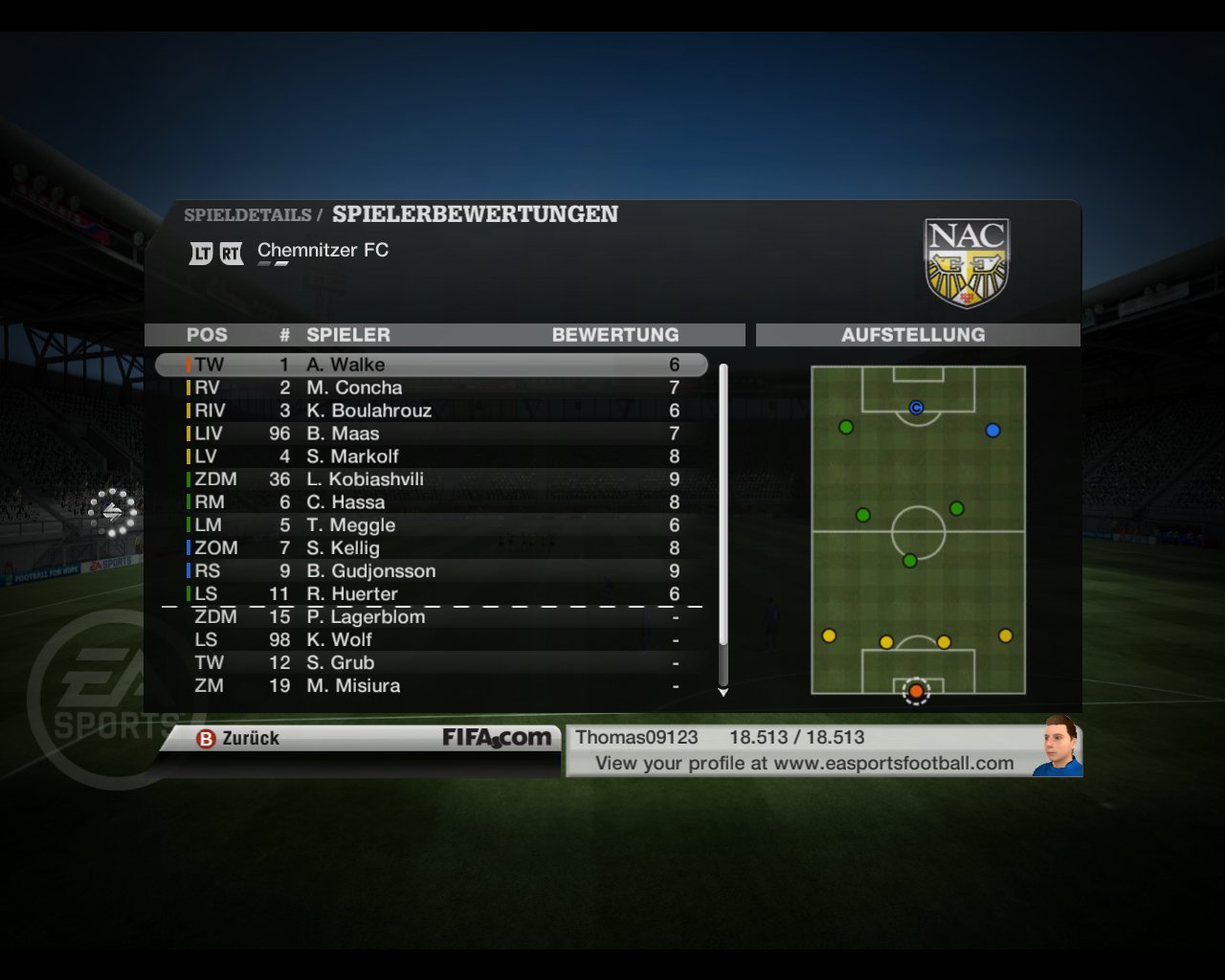 Fromlowitz (6, Gladbach) - Goettlicher (8, Gladbach), Böhme (8, Homburg), Hillebrand (8, Mannheim), Träsch (8, Aachen), Diego Morais (8, Kiel) - Sträßer (9, Schönberg), Owomoyela (9, Mannheim) - Carvalho (9, Schönberg), Franca (9, Mannheim), Trochowski (9, Kiel)