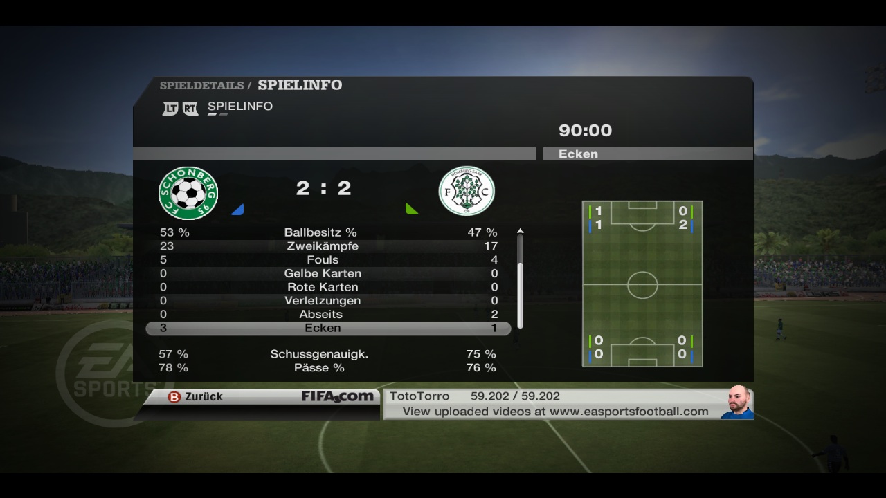 Nach dem Seitenwechsel hatte dann Schönberg die erste Möglichkeit, das 2-0 zu erzielen. Carvalho nimmt Arlioglu am rechten Homburger Strafraumeck den Ball ab und flankt auf den langen Pfosten, aber Choupo-Moting bekommt freistehend den Ball nicht gedrückt und dieser streicht über die Querlatte (53. Minute).