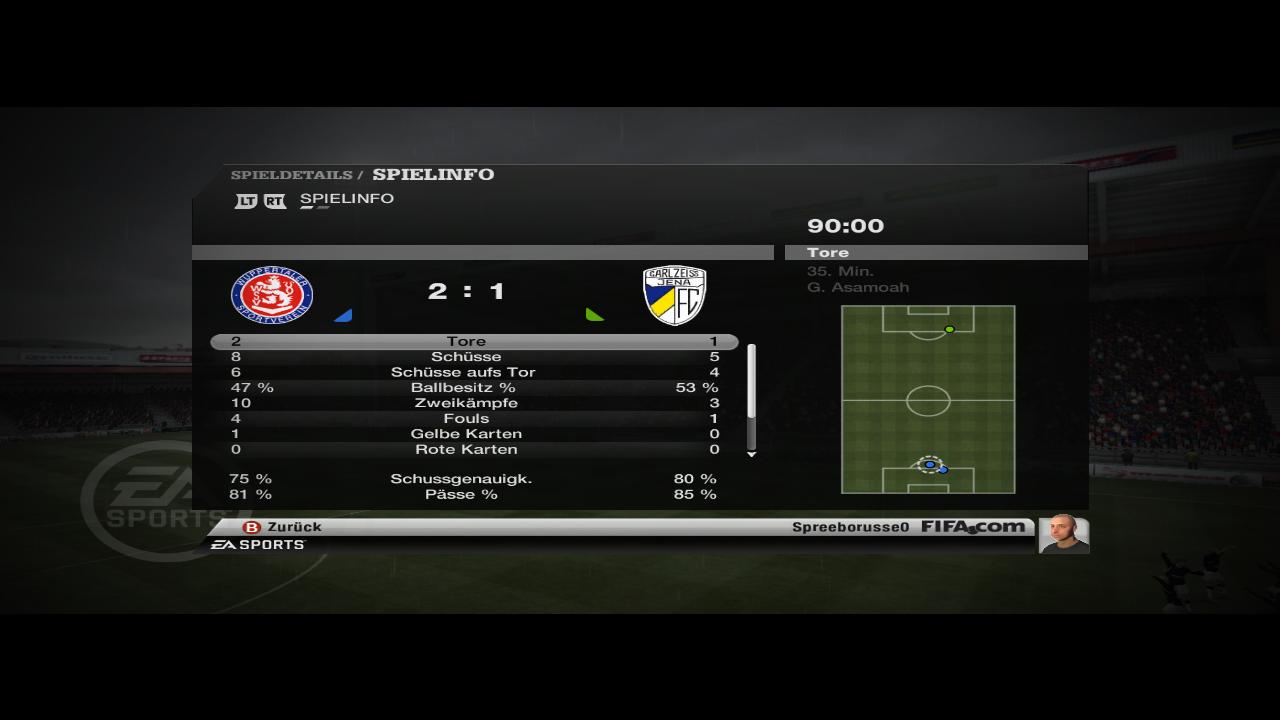 | Spielbericht: Die Wuppertaler Fans sind voller Erwartung ins Stadion gekommen.Sie wollten nach dem miserablen Hinrundenende endlich mal wieder einen Sieg sehen, und sie wurden nicht enttäuscht. Die erste Chance im Spiel hatte allerdings der Gast aus Jena.Doch die wurde kläglich vergeben.Dann konnten die Fans im weiten Rund endlich jubeln.Müller macht in der 9. Minute das 1:0 für Wuppertal, nach schöner Vorarbeit von Asamoah.Jetzt brechen hier alle Dämme. Doch die Freude wärte nur bis zur 19. Minute.Da kam Jena das zweite mal gefährlich auf das Tor zu.Und........................1:1 durch Fort. Die Fans peitschten die Mannschaft nach vorne. Wuppertal heute mit gutem Passspiel, das auch belohnt wurde.In der 35. Minute wird Asa mustergültig angespielt und vollendet zum bis dahin verdienten 2:1. HZ 2: Beide Mannschaften kommen unverändert auf den Platz zurück. In den 45 Minuten erspielen sich beide Mannschaften kaum Chancen, aber die größte hat Jena als Plötzlich Fort den Ball in die Füße gespielt bekommt und den Ausgleich machen kann.Aber Wessels schmeist im sich entgegen.Die letzte Aktion hatte Valdez.Alleine läuft er auf das Tor von Jena zu, als er meint Jensen rauskommen zu sehen verucht er den Ball ins Tor zu schiessen aus gut 25 Meter.Aber der Schuss ging daneben.Endstand 2:1 für Wuppertal. Trainerstimme Wuppertal: Nach den letzten Niederlagen in der Hinrunde, war es extrem wichtig hier zu Hause zum Auftakt 3 Pkt zu holen.Das ist uns gelungen, die Fans können zufrieden nach Hause gehen.Unser neuer Abwehrspieler Barletta hat sich super eingefügt und man sah er gibt der Abwehr halt.Ich hoffe das geht weiter so, damit wir schnell unsere 40 Pkt holen die wir brauchen um in der Liga zu bleiben. Trainerstimme Jena: Tja was soll man sagen? Das wäre heute ein wichtiger Punkt gewesen und Wuppertal hat scheinbar in so einer situation die besseren Nerven. Ich denke die heutige Partie hatte kein Sieger verdient, aber Wuppertal hat wohl wie schon erwänt die besseren Nerven. Wenn Fort in der 88 Minute den Ausgleich macht wäre er der Held. Im großen und ganzen waren wir gegensatz zum vorrigen spiel zu ängstlich. Screens folgen in Kürze.............. | ||||