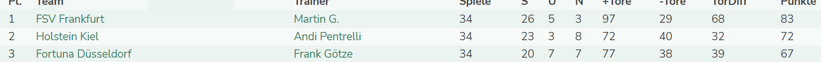 Unter 26.Saison Transfermarkt findest du die beiden Trainertabellen für die 1. und 2.Liga. Zudem sind die Tabellen in den jeweiligen LiveTicker-Threads im ersten Post eingepflegt.