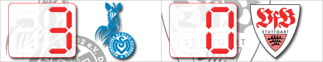 | Toni Kroos rettet den MSV 45 Minuten spielte nur eine Mannschaft - der VfB Stuttgart - doch am Ende sind es die Zebras, die die drei Punkte zu Hause behalten dürfen. Stuttgart scheitert zunächst zweimal im 1:1 am Torhüter, versucht dann beim dritten Mal quer zu legen, wodurch eine weitere 100%ige Chance vergeben wurde. Mit der ersten richtigen Torchance der Duisburger in der 45.Spielminute gelang dann Toni Kroos das 1:0 nach einem Doppelpass mit Lövenkrands. In der 49. Minute ist es erneut Kroos, der nach Zuspiel von Grafite die Abwehr der Stuttgarter überwindet und das 2:0 erzielt. Den Schlusspunkt setzt nach einer Flanke von Grafite der völlig freistehende El Kasmi in der 54. Minute. Fazit: Neun Spielminuten zeigte der MSV was er drauf hat, über die anderen 81 sollte man lieber den Mantel des Schweigens hüllen... | ||||