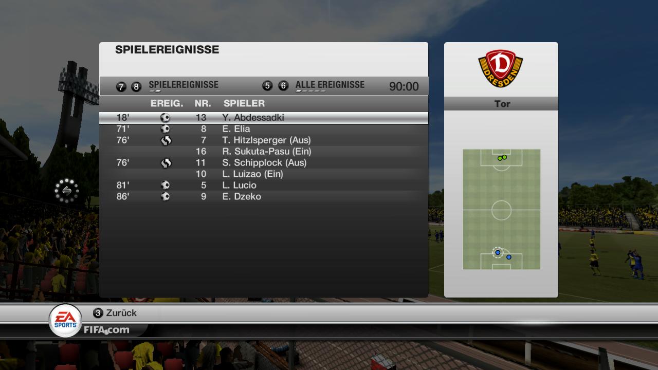 | Abdessadki (1) Elia (1) | (1) Lucio (1) Dzeko | |||