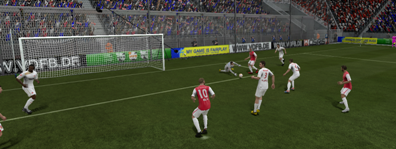 Auch der 2.Abschnitt brachte zunächst keine Verbesserung. Die Bemühung war erkenntlich, doch meist blieb es dabei. Und so musste ein Fehler für ein Tor herhalten. Einen harmlosen Schuss der Cottbusser fing Gästekeeper Kirschbaum hinter der Torauslinie ab. Besonders bitter für Düsseldorf, da er ihn einfach ins Aus hätte gehen lassen können. So gab es Eckball. Adlung brachte diesen an den 5-Meter-Raum, wo Uwe Hünemeier den Ball ins Tor nickte.