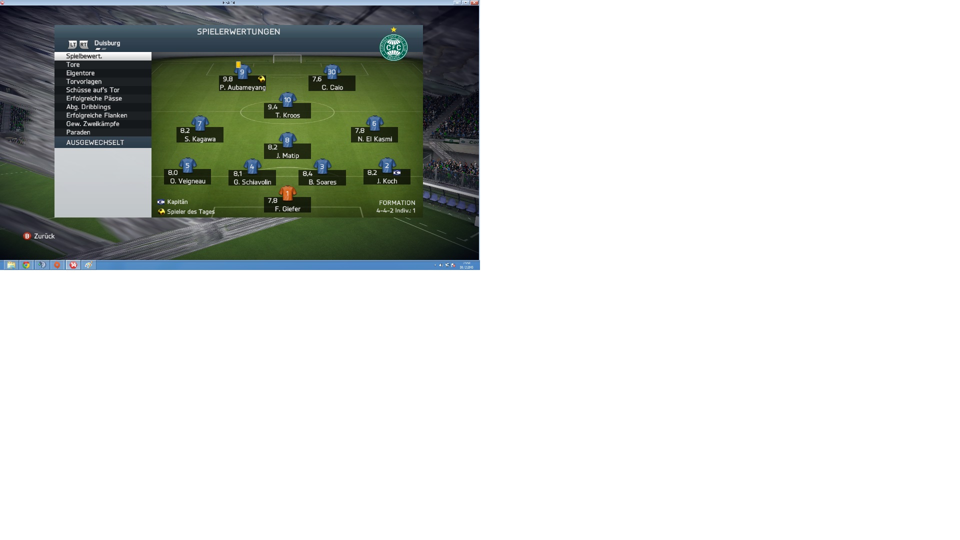 Katastrophen Spiel für 96 ... Ich weis selber nicht woran das gelegen hat ich kam überhaupt nicht ins Spiel und kaum über die Mittellinie und dann war da noch dieses MOnster namens Aubaschlagmichtod der erstens schneller als ein Dusenjet über den Platz geflogen ist und wie ein MAGNET jeden Ball angeogen hat desweiteren haben wir natürlich 2-3 Tore uns selber reingelegt als ein kleines nachträgliches Weinachtsgeschenk für Pascal