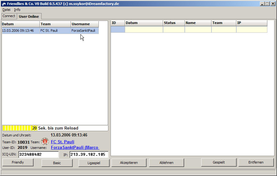 Ich habe nun heute zum erstenmal seit das Tool existiert herausgefunden, dass man über friendly.exe das Tool neben Fifa laufen lassen kann. Bisher bin ich habe ich immer wieder Fifa ausgemacht und geschaut, ob da vielleicht jemand auf ein Spiel Lust hat.