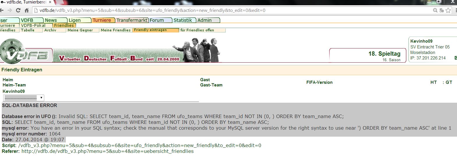 Gestern hatte ich 3 Spiele gegen Metze den neuen und wollte meine ergebnisse eintragen soweit so gut. anfangs gings auch.