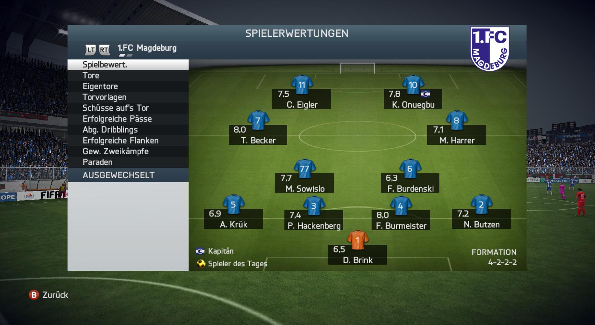 Mit Kampf zum Punktgewinn in Magdeburg Viel gibt es nicht zu berichten. Torchancen ergaben sich in der Regel nur nach Ecken. So auch das 1:0 durch Magdeburg durch Onuegbu in der 20. Minute. Der Ausgleich fast im direkten Gegenzug durch Eckhardt, der mindestens genauso hässlich durch einen hohen Ball in den Sturm angespielt wurde, um dann allein vorm Tor einzuschieben. Magdeburg mit einer überraschend hohen Anzahl an Torschüssen, welche sich aber zumeist nach Eckbällen und anschließenden Abprallern ergaben. Beide Teams mit dem Versuch das Spiel zu kontrollieren, so spielte sich viel im Mittelfeld ab. Am Ende steht hier ein Remis, trotz leichtem Übergewichts seitens Magdeburg. Ein Punkt mit dem wir leben können. | ||||