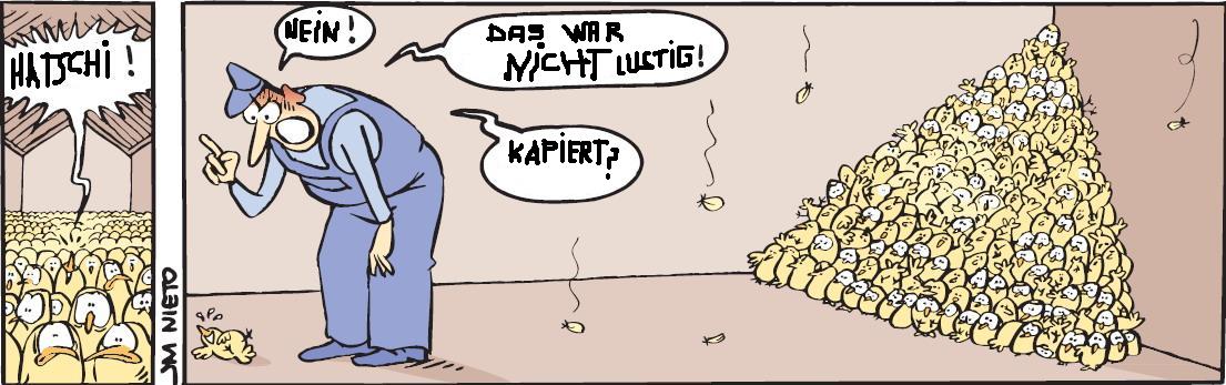 das huhn darauf: "wenn ich huste, fürchtet sich die ganze welt"!
