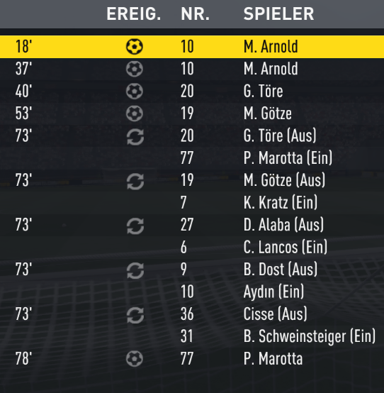 Nach dem Wechsel ging es da weiter, wo es aufgehört hatte. Diesmal wechselten Götze und Töre allerdings die Rollen, überwanden mit einem feinen Doppelpass die Gästedeckung und nun war es Götze, der einnetzen durfte (53.).