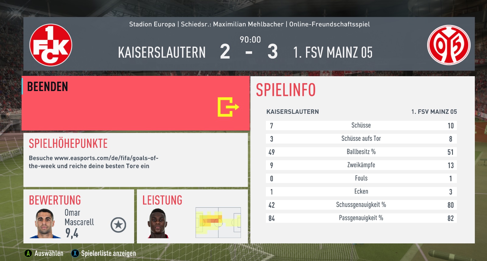 1. FC Kaiserslautern (2) : (3) 1. FSV Mainz 05 (35.700 Zuschauer)