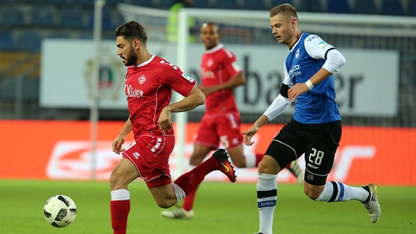 Die Würzburger Kickers haben ihr Auswärtsspiel auf der Bielefelder Alm mit 1:4(1:1) für sich entscheiden können. Damit zeigte sich das Team von Trainer Feulner nach der Auftaktpleite gegen Türkgücü stark formverbessert. Die Würzburger waren von Beginn an die bessere Mannschaft, doch in Führung gingen die Hausherren. Da die Gäste beste Chancen vergaben und die Arminia sich eiskalt vor dem Gehäuse der Würzburger zeigte, ging zunächst die Arminia in Front. Den Schock mussten die Gäste erst einmal kurz verarbeiten, ehe der Aufstiegskandidat wieder zum gepflegten Kurzpassspiel zurück kam. Dieses Mal machten es die Würzburger in Person von Neuzugang Berisha deutlich besser und glichen zum 1:1 aus. Im zweiten Durchgang bot den 22.500 Zuschauern auf der Bielefelder Alm ein ähnliches Bild. Die Würzburger machten das Spiel, erspielten sich die eine oder andere Torchancen, doch anders als noch in Halbzeit 1 zeigten sich die Kickers nun auch vor dem Tor treffsicherer. Besonders Neuzugang Berisha, der zwei weitere Treffer nachlegte. Da sich auch Stürmer Mateta noch in die Torschützenliste eintrug, gewannen die Würzburger ihre Auswärtspartie am Ende deutlich mit 1:4. Die Gäste konnten somit einen kompletten Fehlstart in die 27.Saison verhindern.