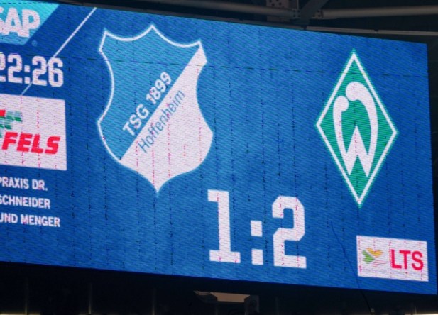 Bei den weiterhin abstiegsbedrohten Sinsheimern erwischte die Mannschaft vom erfahrenen Trainer Cobra den deutlich besseren Start. Der Lohn für eine couragierte Anfangsviertelstunde der Bremer war der frühe Führungstreffer von Adli (11.). Die Norddeutschen blieben im weiteren Verlaufe der ersten Halbzeit die spielstimmende Mannschaft und erhöhten fünf Minuten vor dem Seitenwechsel durch den Treffer von Thuram (40.) auf 0:2. Nach der Pause verpassten es die Gäste das Spiel endgültig zu entscheiden. So brachte Baumgartner die TSG nach einer Stunde zurück ins Spiel. In der Schlussphase hatten die Bremer dann Glück, dass die Toxic-Elf nicht noch den Ausgleichstreffer erzielte. Es blieb also beim knappen Bremer Vorsprung. Nach Abpfiff feierte die Cobra-Elf den erfolgreichen Start in die Rückrunde mit den etwa 2300 mitgereisten Anhängern.
