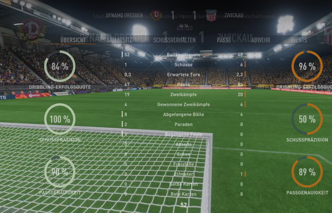 In der 61. Minute machte Zwickau durch Huth das Entscheidende Tor des Tages. Hierbei machte Keeper Körber, der ansonsten klar der beste Spieler der Dresdner war, keine ganz Glückliche Figur. Ansonsten ist es gerade ihm zu verdanken, dass Dresden bei 17 Schüssen der Zwickauer nicht höher verlor. Gerade in der darauffolgenden Viertelstunde konnte er Dresden im Spiel halten. Auf die Frage ob Zwickau das Spiel hier nicht hätte zumachen müssen antwortete P3RYPL3X „Wir haben eine junge kämpfende Mannschaft, die noch im Lernprozess ist, insofern mache ich der Mannschaft keinen Vorwurf, zumal auch Körber über sich selbst hinausgewachsen ist“