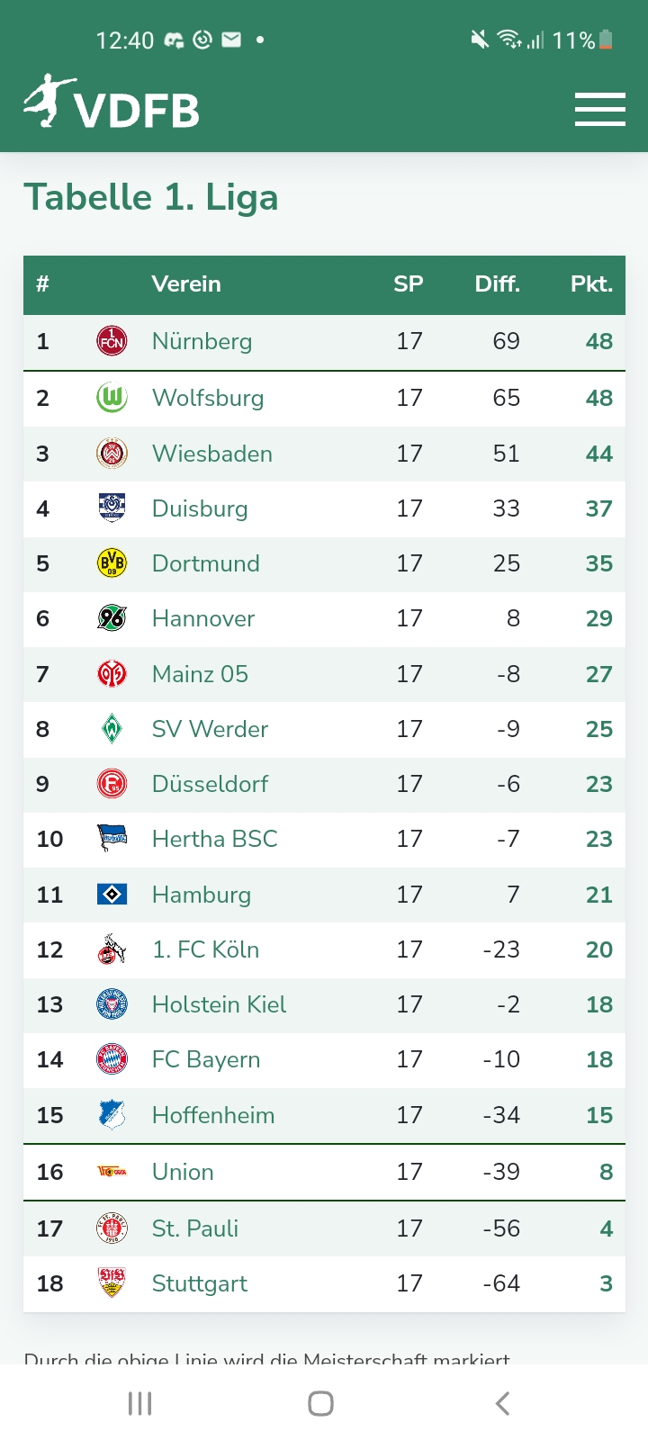 • 1.FC Nürnberg: aktuell 1.Platz (Ziel: VDFB-Meisterschaft) > derzeit + 1 FG Punkt