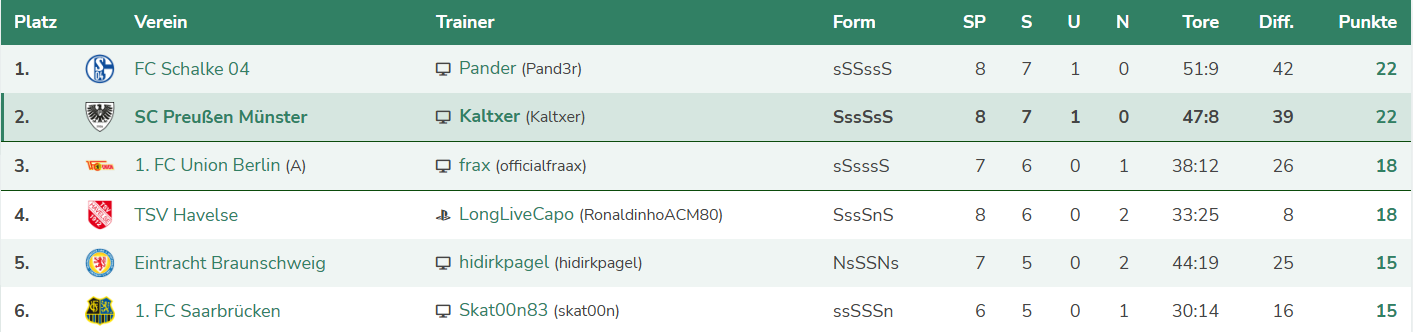 Preußen Münster empfängt als Nächstes Bielefeld im Topspiel. Ich bedanke mich fürs lesen.