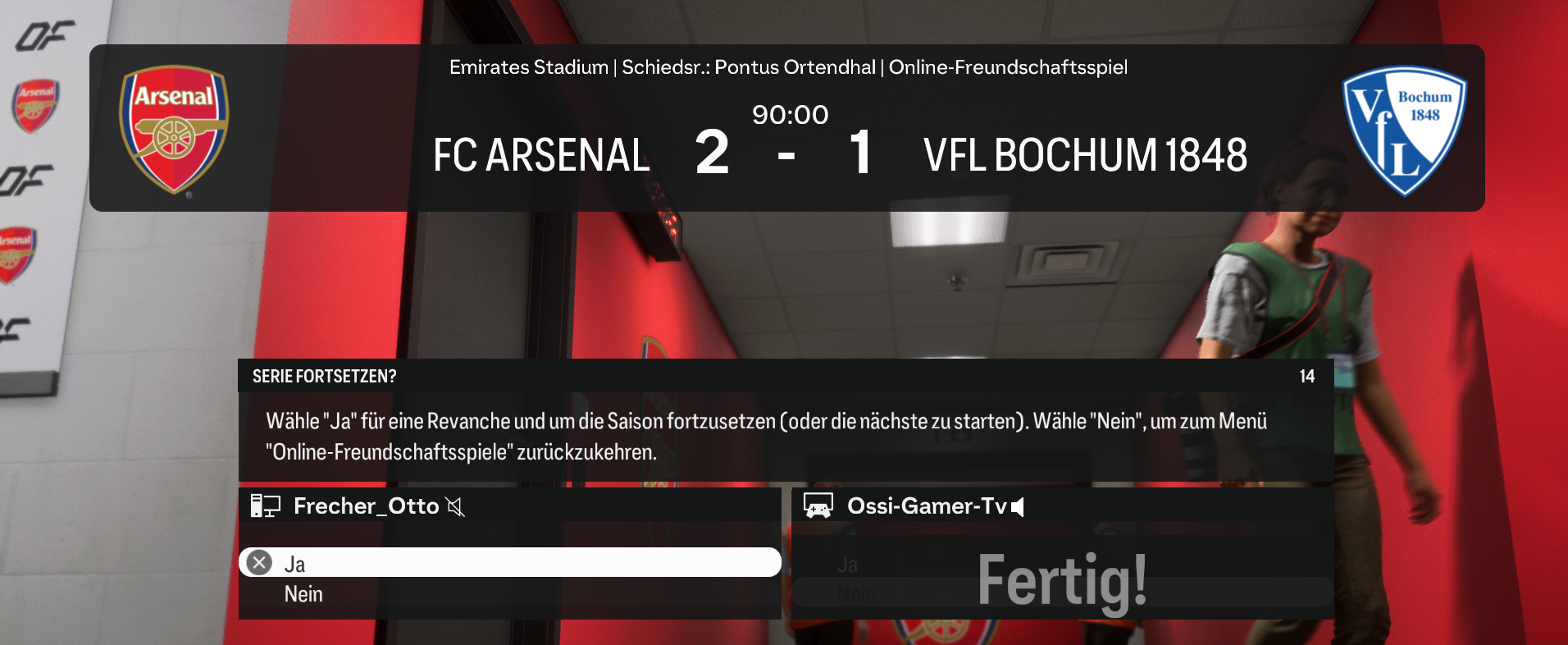 Spiel wurde in der 77 Minute abgebrochen.