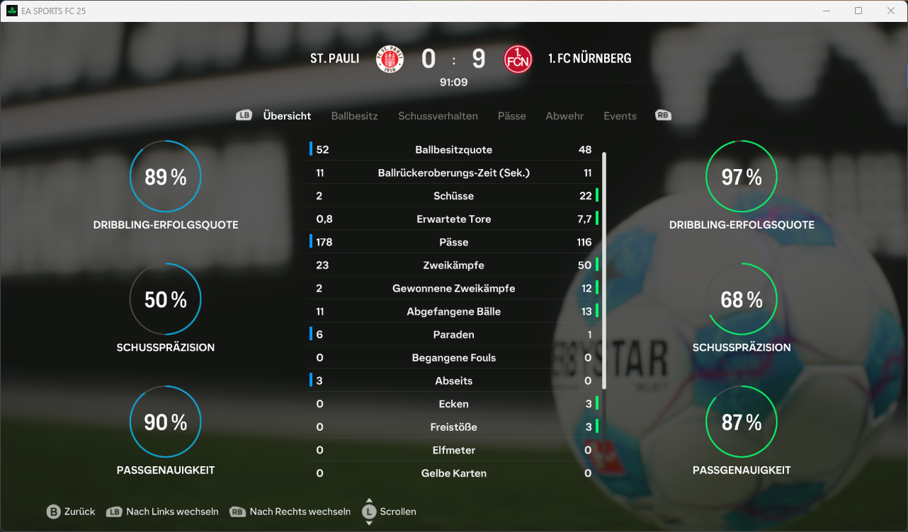 Die Kiezkicker konnten den Club heute nur in der ersten Hälfte ärgern, weil man aus eigener Ballkontrolle viel kreierte und gefährlich bis in den Strafraum kam - der Abschluss fehlte. Der Club brauchte zwei hohe Ballgewinne und die indiviuelle Klasse um ein 2:0 herauszuspielen, ehe dann früh in der 2. Hälfte ein Strumlauf des Clubs mit 4 Toren in 15 Minuten das Spiel entschied. Mit Tempovorteilen und der längeren Luft hübschte man dann noch das Torverhältnis gegen unter Wert geschlagene St. Paulianer. |