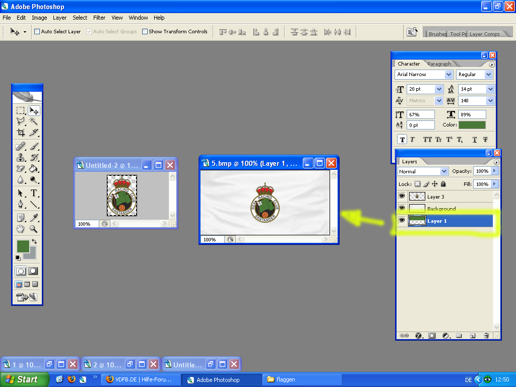 Wappen positionierenmit dem verschiebe werkzeug schieben wir das wappen nun an die richtige position im bild - bei ausgewähltem verschiebe-werkzeug geht das auch und genauer mit den pfeiltasten der tastatur