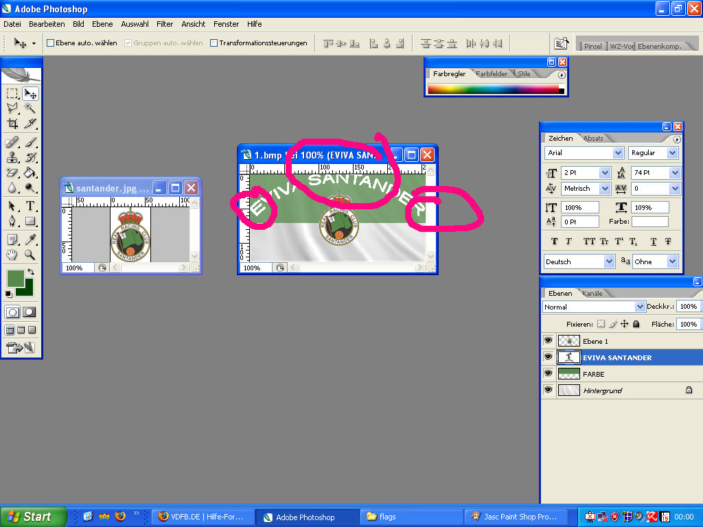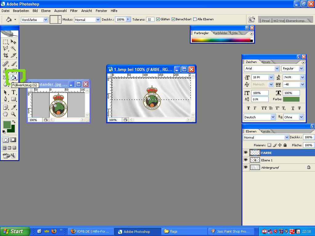 haben wir es ausgewählt klicken wir mit der linken maustaste, auf das grün der flagge im wappen von santander - die farbe wird zur ausgewählten farbe (bild 4)