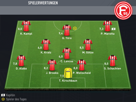 Nach dem Wechsel kam die Fortuna dann wieder frischer aufs Feld. Die erste Chance gehörte Brooks, der es nach einer Ecke nicht wieder zurück ins Abwehrzentrum geschafft hatte und einen langen Ball von Alaba erhielt. Der Innenverteidiger setzte allerdings zu langsam nach, verfehlte den Ball und traf stattdessen Waldhofs Schlussmann Gäng. Für diese ungestüme Aktion sah der Abwehrrecke den gelben Karton (57.).