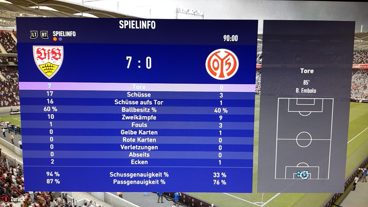 Hier würde mich jetzt die Schuss / Torschuss bzw. Ballbesitz Statistik interessieren