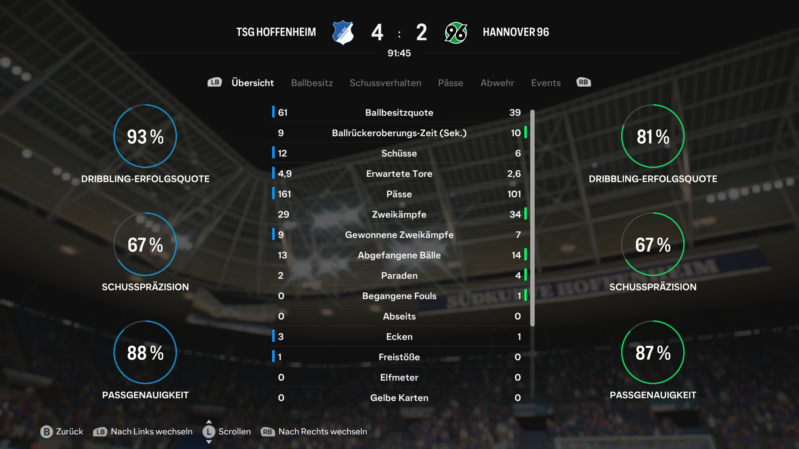 Rassiges Duell mit hochpressenden Schalkern, die in Halbzeit 1 auch ein Tor verdient gehabt hätten, doch der Pfosten und minimal fehlende Zielgenauigkiet machten einen Strich durch die Rechnung. Hoffenheim dagegen zu Beginn effizient. Nach dem 5:0 jedoch auch glücklos.