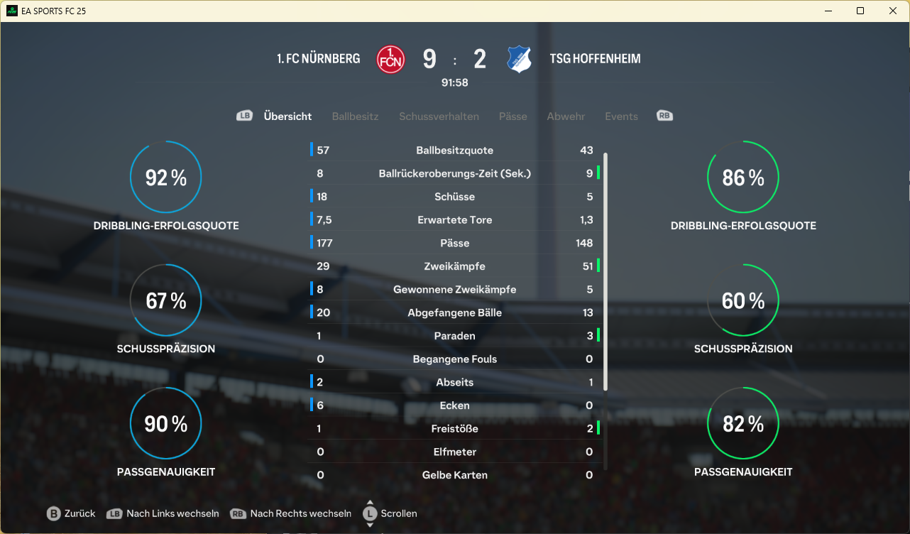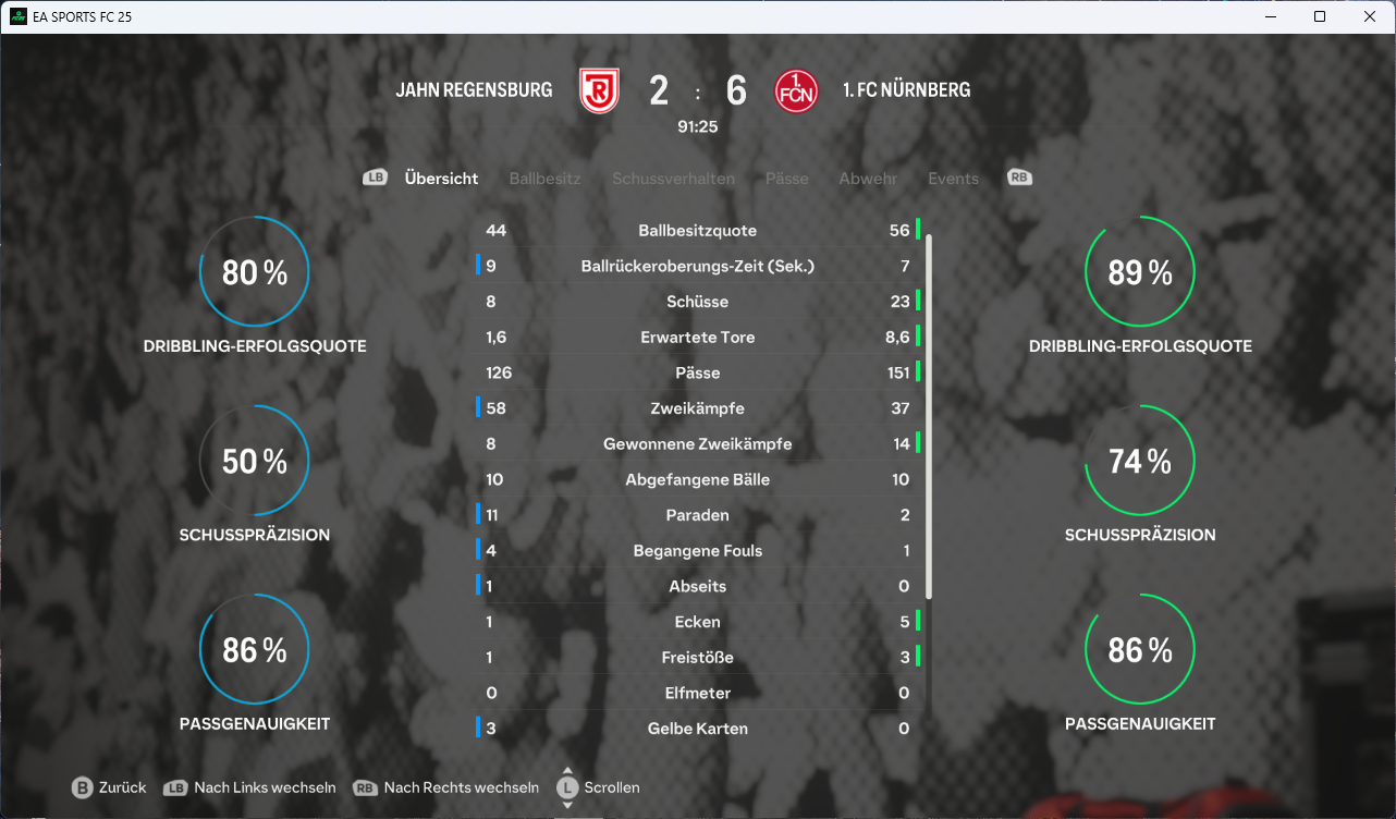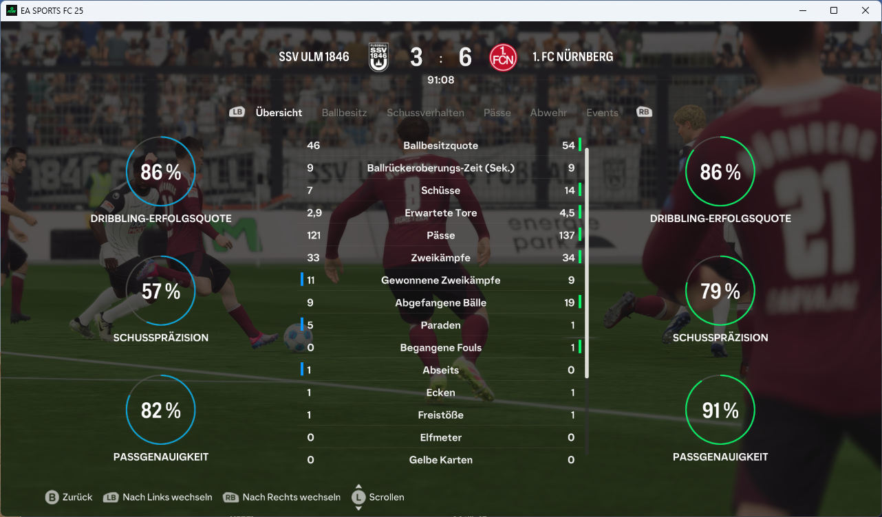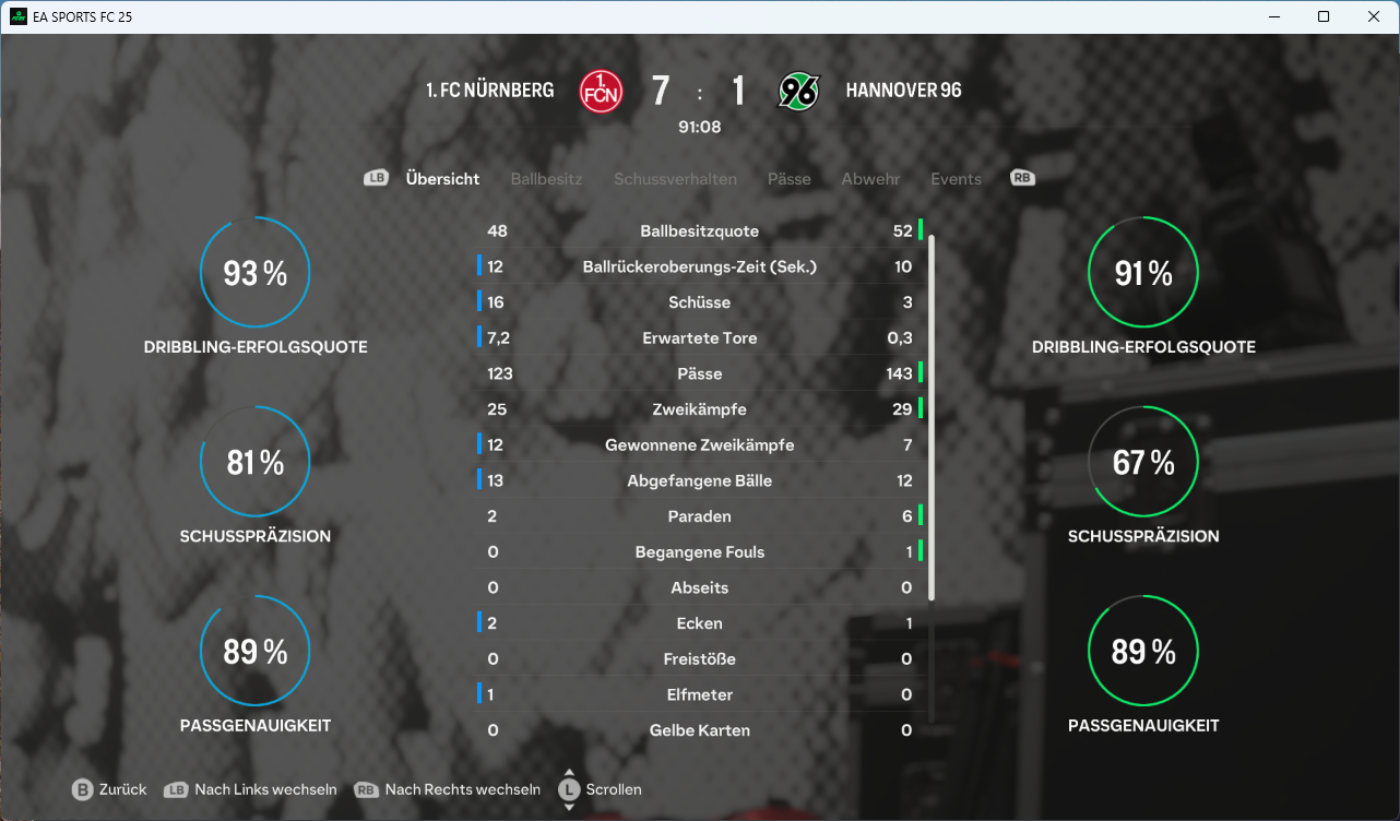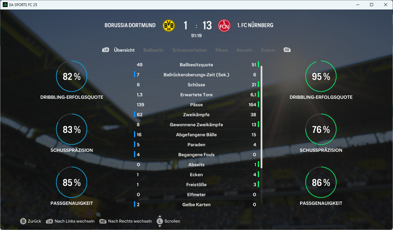 Der zweite Durchgang brachte dann nach 57. Minuten den Knackpunkt, als Son ein Chancenplus des FCN in ein 2:0 ummünzte, während der MSV ein drittes Mal am Alu scheiterte! 14 Minuten später, nach vielen Wechseln in beiden Teams hhatte dann Wirtz zum ersten Mal einen Moment für sich und netzte aus 16 Metern zum vorentscheidenden 3:0 ein. Haaland antwortet freistehend noch zum 1:3, doch der Club behielt die Nerven und durfte noch über das schmeichelhafte 4:1 jubeln.