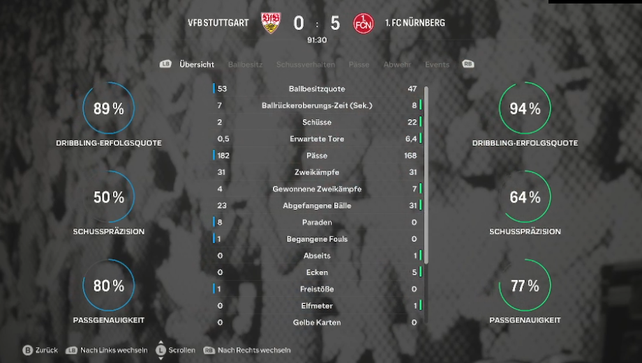 Der Underdog gerät früh unter Druck aber macht dann mit der ersten Offensivaktion und unter mitHilfe von Cancelo den Ausgleich, der leider nur 3 Minuten hält. Danach hat der FCN alles unter Kontrolle, kann mit frühen Ballgewinnen noch 2 der weiteren 3 Tore provozieren. Doch auch der Keeper des HFC konnte sich heute wirklich auszeichnen und pushte die eigenene Defensive, die sich nie aufgab.