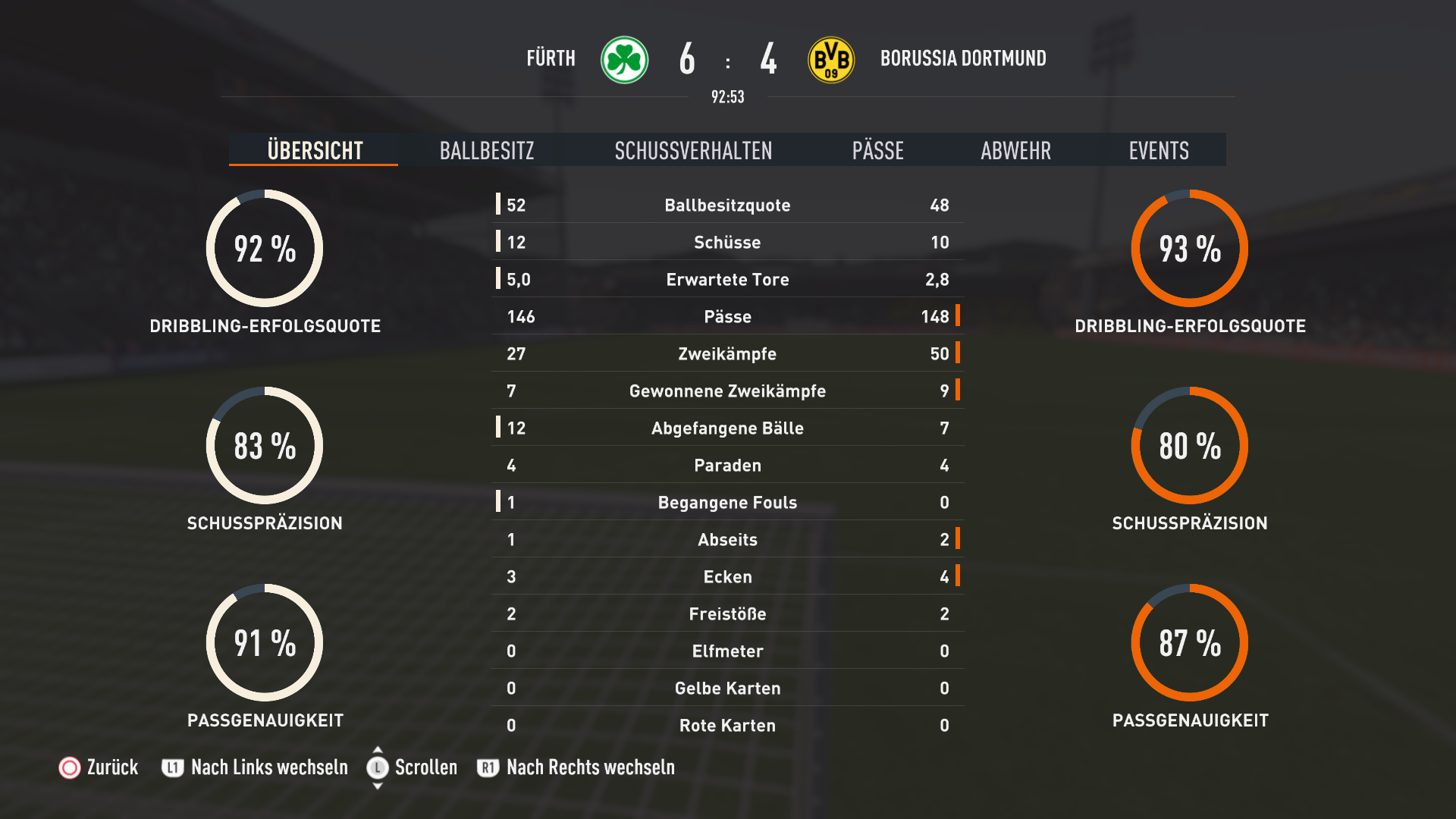 Zum Spiel, ja sehr komisch liege direkt 2:0 hinten, fange mich dann wieder und führe mit 2:5 und das hätte sogar noch höher sein können und dann schießt Brandt da so ein Sonntagsschuss Tor aus 20M und es läuft wieder fast alles in Richtung Wolfsburg und meine Mannschaft weigert sich zurückzulaufen und ich steh hinten komplett offen und fast durchgängig nur noch mit 2 IVs und dann stelle ich auf sehr defensiv und es wird gefühlt nur noch schlimmer. Das man dann in der 90+2 noch den Ausgleich kassiert ist natürlich sehr bitter
