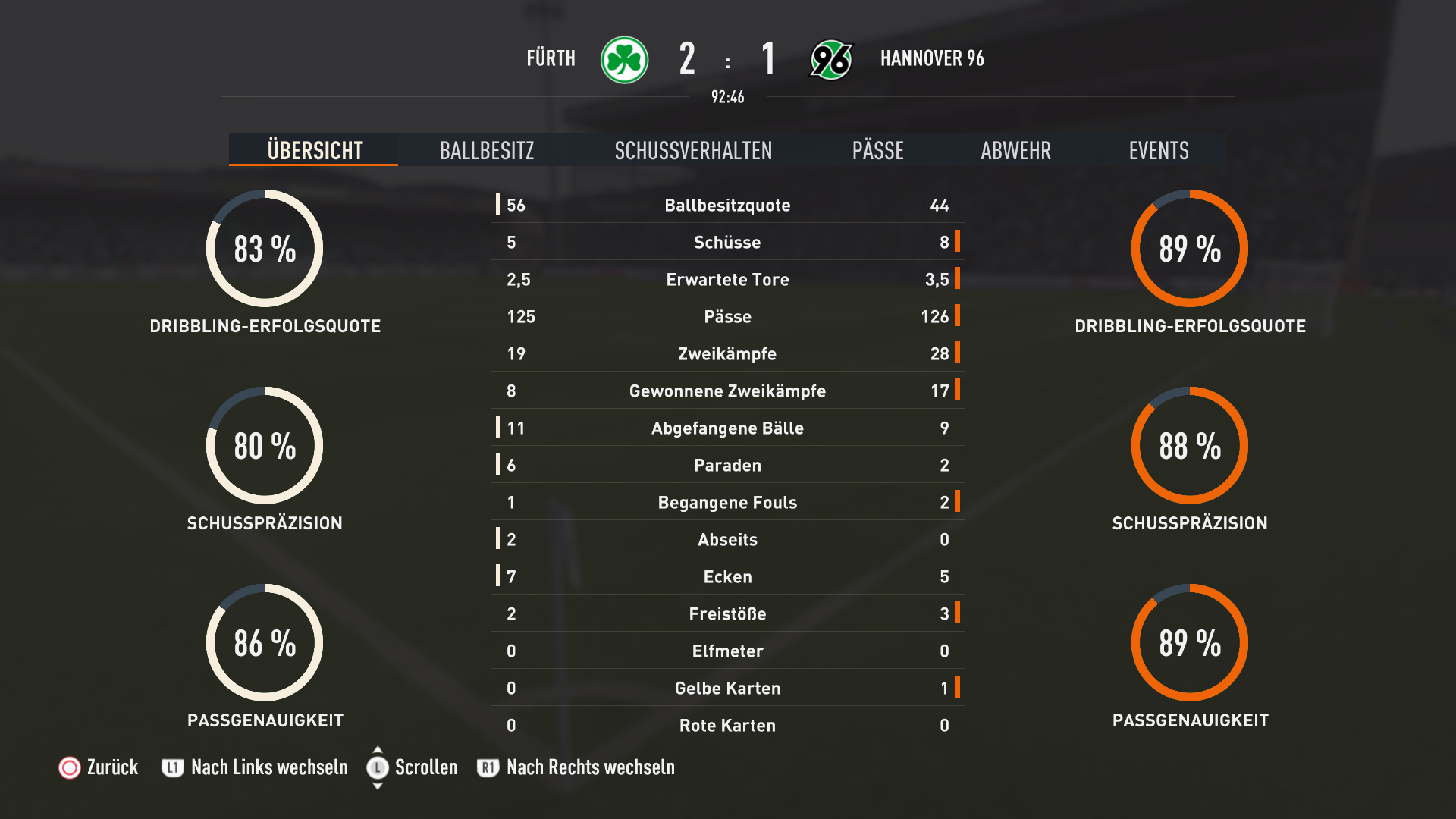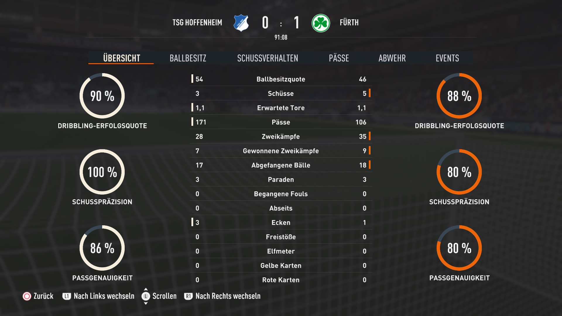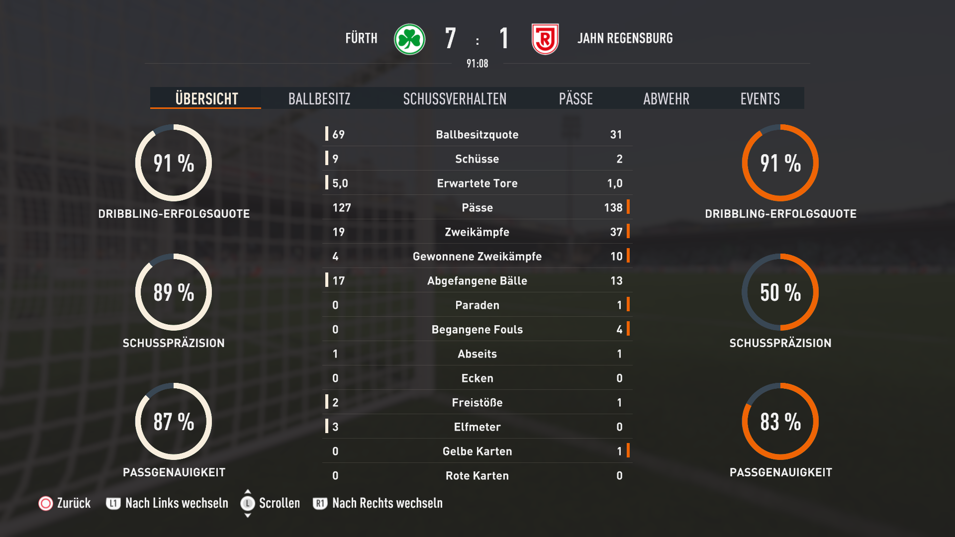 Insgesamt eiglt ein sehr schmeichelhaftes Ergebnis für die Franken die zwar früh mit 3:0 in Führung gehen, aber dann den Rest des Spiels viel Glück haben das die Oldenburger Stürmer einiges an Chancen liegen lassen bzw Ortega mehrfach klasse pariert.