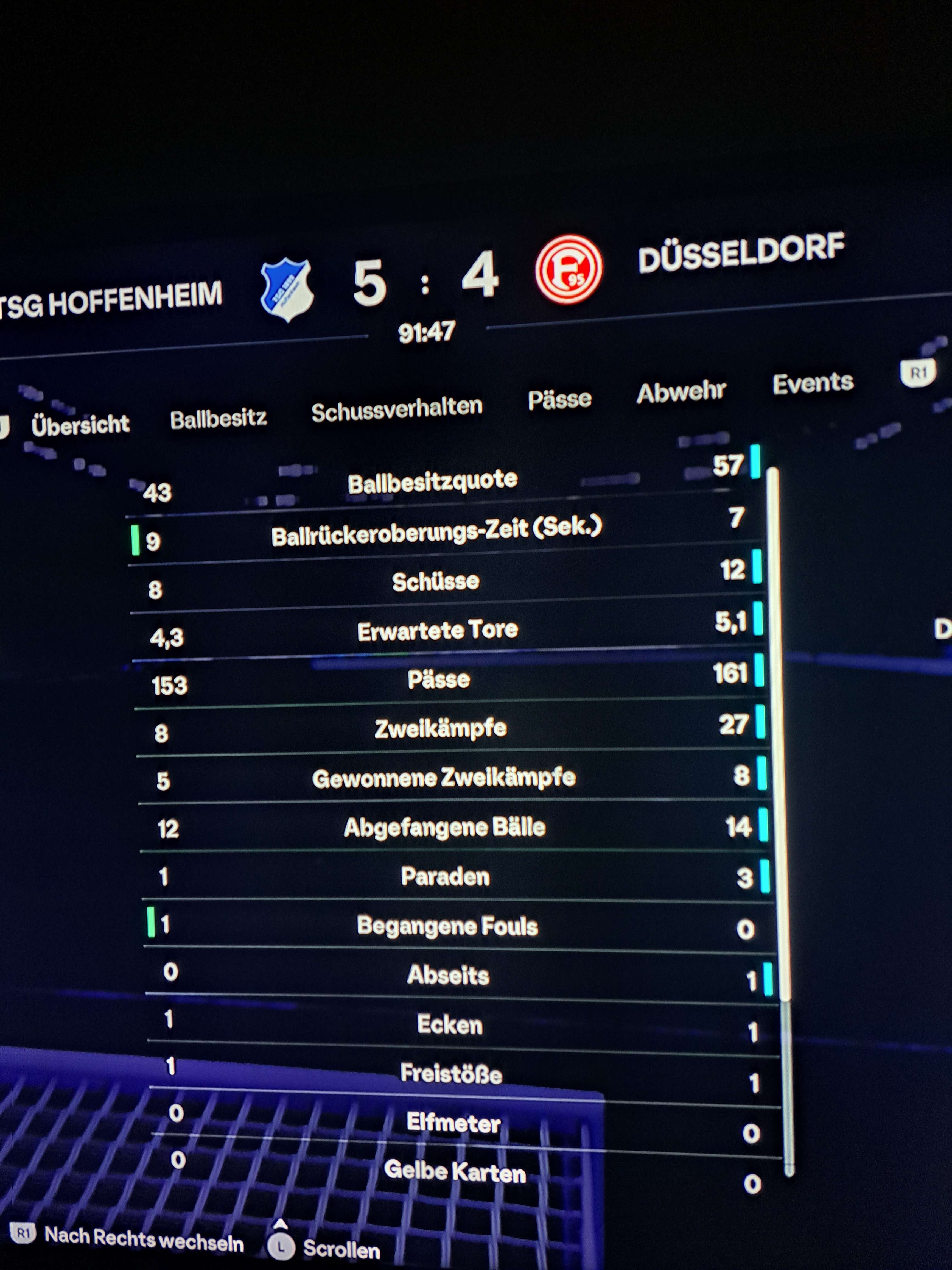 Doch mit der deutlichen Führung im Rücken musste Rostock hinten aufmachen und fing sich noch 2 Tore und so stand es nun 6:1 für die TSG und keiner wusste wie das passiert ist.